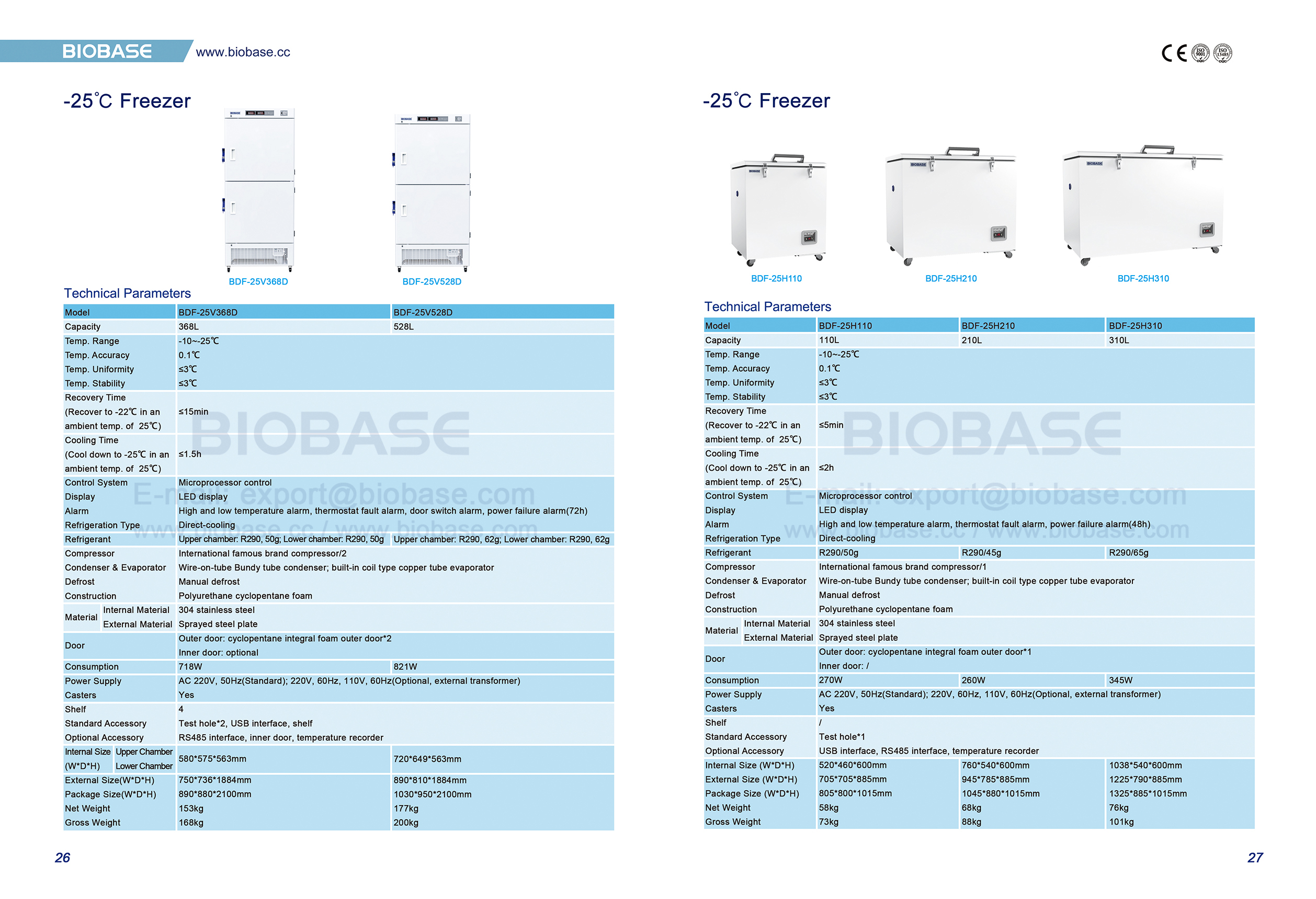 ตู้แช่แข็งอุณหภูมิ -25°C ขนาด 368L และ 528L เหมาะสำหรับงานวิจัยทางวิทยาศาสตร์ การทดสอบวัสดุพิเศษที่ต้องใช้อุณหภูมิต่ำ การเก็บรักษาพลาสมาแช่แข็ง วัสดุชีวภาพ วัคซีน และผลิตภัณฑ์ชีวภาพต่างๆ