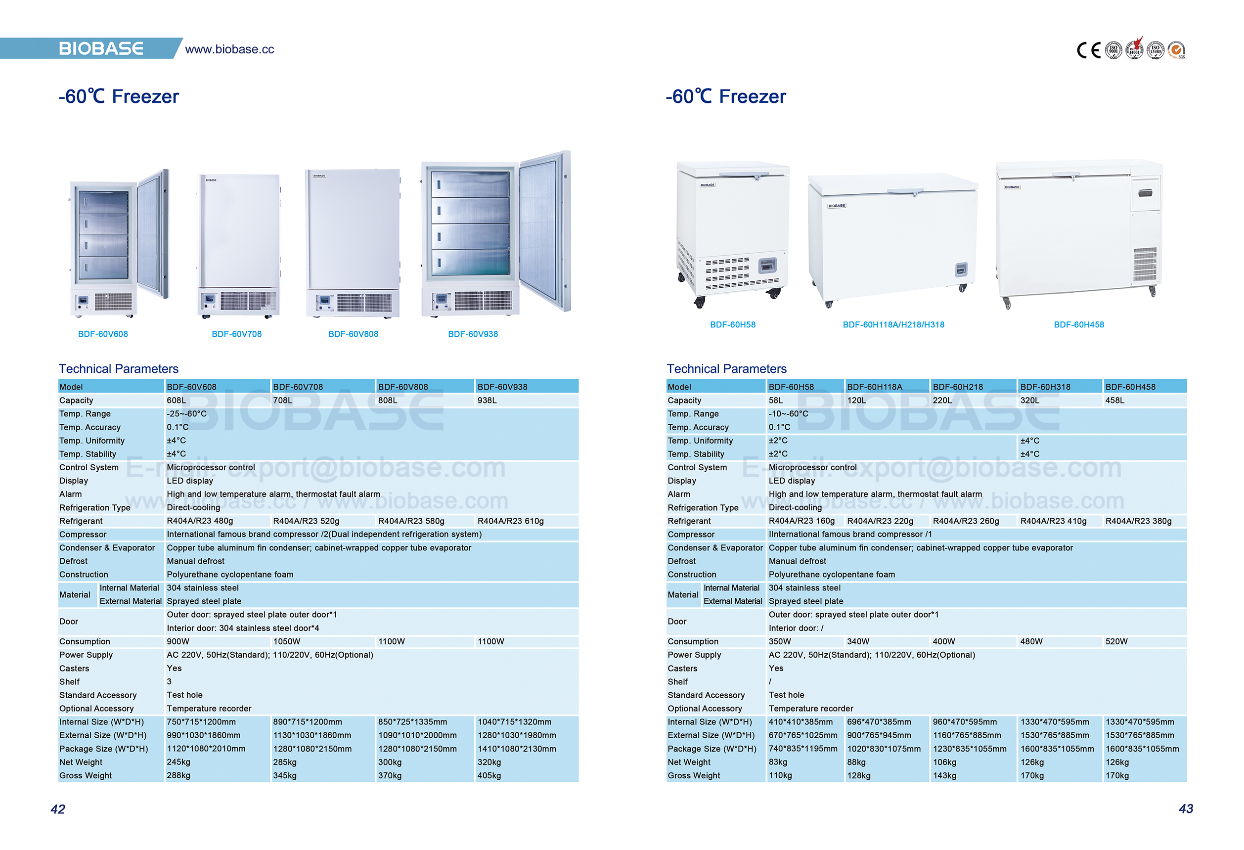 ตู้แช่แข็งอุณหภูมิต่ำ -40°C แบบ 2 ห้อง ขนาด 110L, 210L, 308L และ 485L มีระบบควบคุมอุณหภูมิแบบอิสระในแต่ละห้อง เหมาะสำหรับการใช้งานในโรงพยาบาล ห้องปฏิบัติการ งานวิจัย และงานที่ต้องการควบคุมอุณหภูมิอย่างแม่นยำ