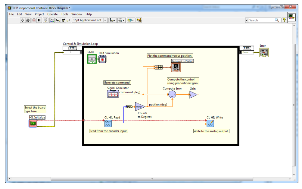 Hardware access is achieved with a set of three hardware-independent, preconfigured HIL interface VI’s: HIL Initialize, HIL Read, and HIL Write. Porting your control code between your host and target systems is as simple as selecting a new I/O configuration, a process which can be accomplished in a few seconds.