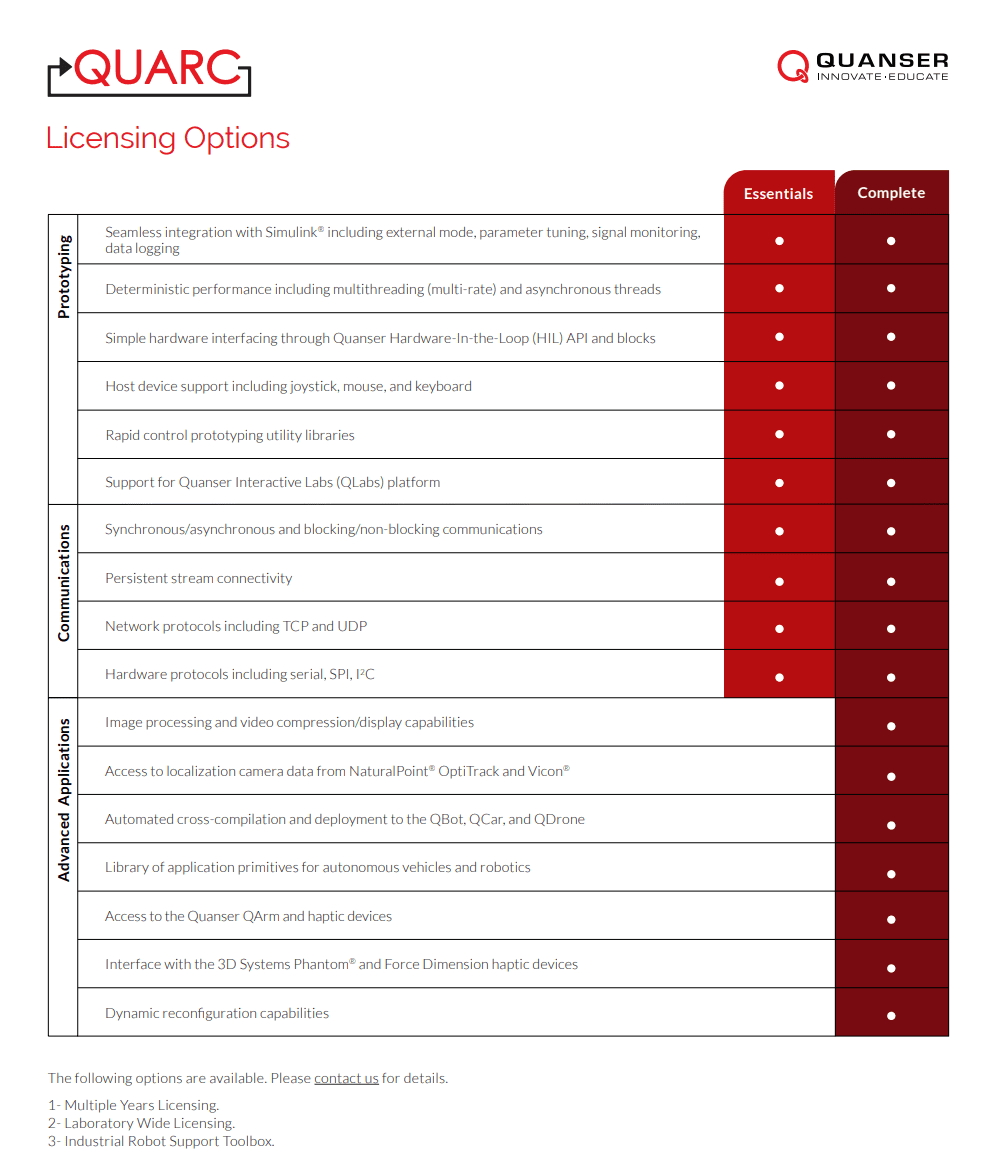 • Support for Quanser Interactive Labs (QLabs) Platform