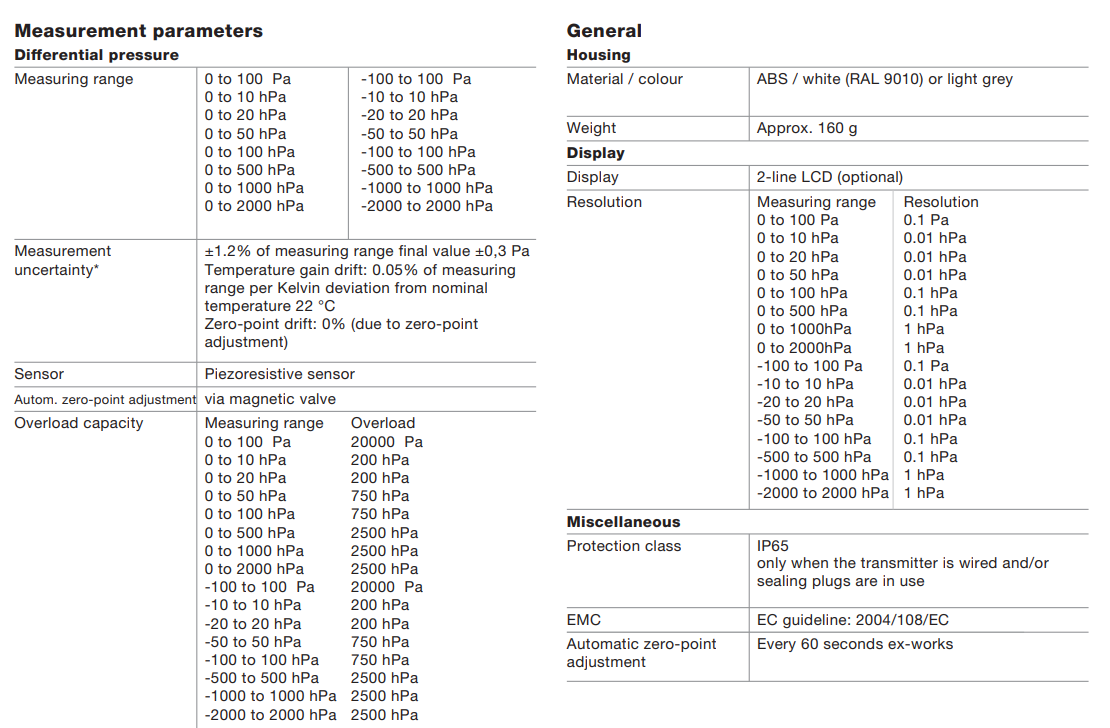 • วัดค่าความดันต่างในช่วง 100 Pa ถึง 2 bar