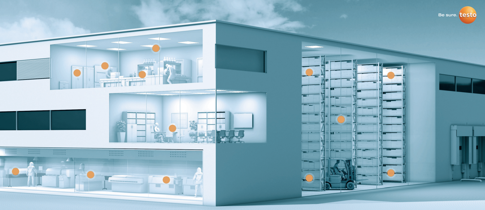 ระบบติดตามและตรวจวัดอุณหภูมิ ความชื้นสัมพัทธ์แบบต่อเนื่อง testo Saveris สำหรับผู้ที่ต้องการระบบที่ทำงานแบบอัตโนมัติ สะดวกรวดเร็ว ออกแบบมาเพื่อตรวจวัดระบบที่เกี่ยวกับ Cold Chain หรือพื้นที่ปิด ซึ่งพบเห็นโดยทั่วไปในการวัดอุณหภูมิและความชื้นสัมพัทธ์ของคลังสินค้า โรงงาน ห้องเก็บความเย็นคลีนิค ห้องแลป หรือ อุปกรณ์แลป และใช้งานในแอปพลิเคชั่นได้อย่างหลากหลาย เช่น